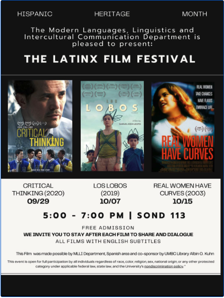In honor of Hispanic Heritage Month, the MLLI department presents, Latinx Film Festival. Today is the first movie, Critical Thinking (2020) at 5PM in SOND 113.