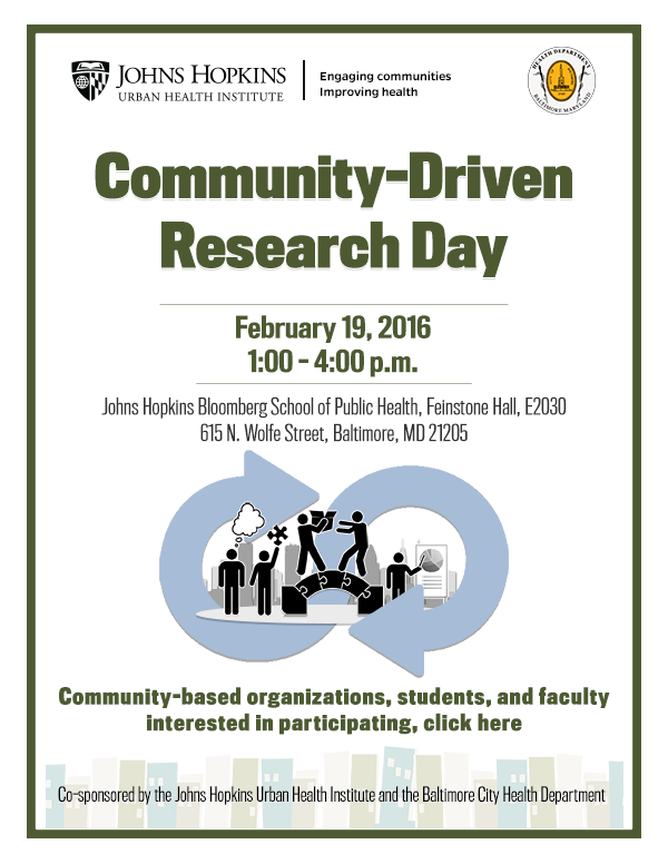 The Community-Driven Research Day (formerly known as Reverse Research Day) is an opportunity on February 19 for community-based organizations and city agencies to share their research questions and needs with students and faculty from Johns Hopkins and other local universities and to identify potential collaborations. UHI will offer up to $10,000 to support community-university collaborations that result from participation.